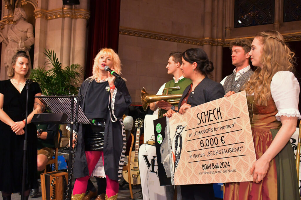 Um auch dieses Jahr die Gelegenheit zu nützen wichtigen Themen anzusprechen und einer wohltätigen Organisation die Bühne zu überlassen, gab es eine Spende von rund 6000€ von der ÖH BOKU und dem Rektorat der BOKU an ‚Changes for Women‘ (www.changes-for-women.org mit dem Namen der Organisation bitte verlinken). Ihr Einsatz dient als Netzwerk und der Unterstützung von ungewollt Schwangeren.