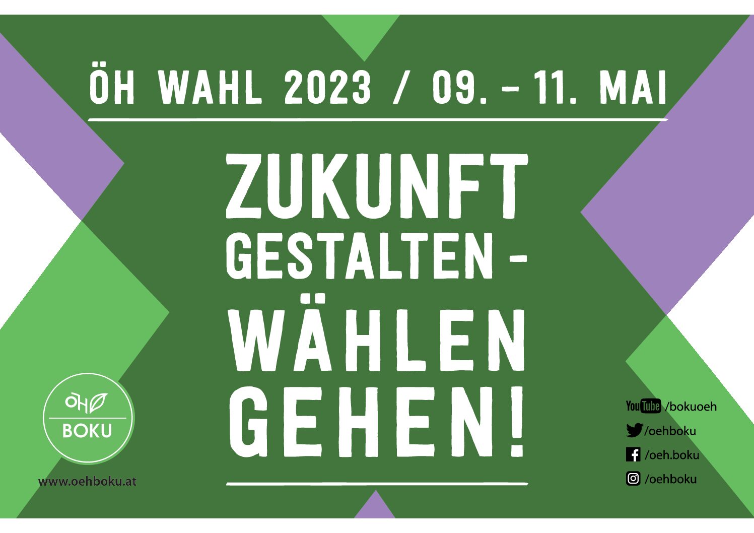 Von 09. bis 11. Mai 2023 finden die ÖH-Wahlen statt, bei der du die Möglichkeit hast, deine Vertretung als Studierende*r zu wählen! Du kannst deine Stimme direkt an der BOKU abgeben und bestimmst damit direkt, wer dich vertritt und was dir im Studium wichtig ist.